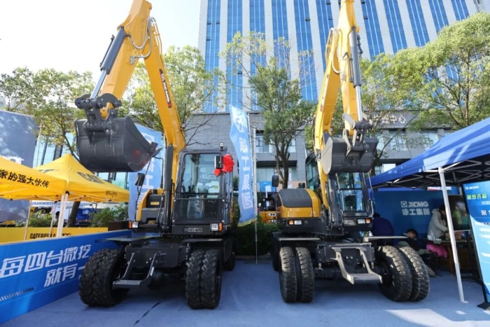 除了履带式产品的精彩展示,徐工XE60WGA和XE80WG轮式挖掘机在本次活动中也备受青睐。轮式行走系统极大增强了设备机动性与场景适应性。通过电控泵与发动机的精准匹配,产品可实现平稳启动与油耗优化,轻松应对市政街巷与山地坡道等多重工况,突破场地限制,提升综合施工效率。