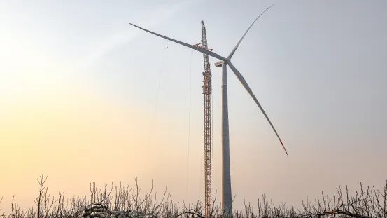 近日,华北沃野之上某400MW风电场建设正有序推进,项目位于开阔的平原,风场面积达62.6平方千米,但风机点位分布散落,四周被梨园环绕,可装机场地面积小,施工空间局促,这对本次吊装作业的提出了严峻考验。