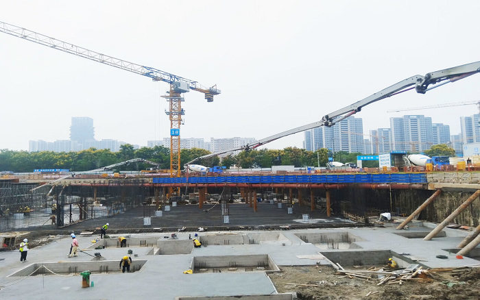 近日,南京地下空间项目建设现场,徐工成套化装备协同作战尽显威力。
