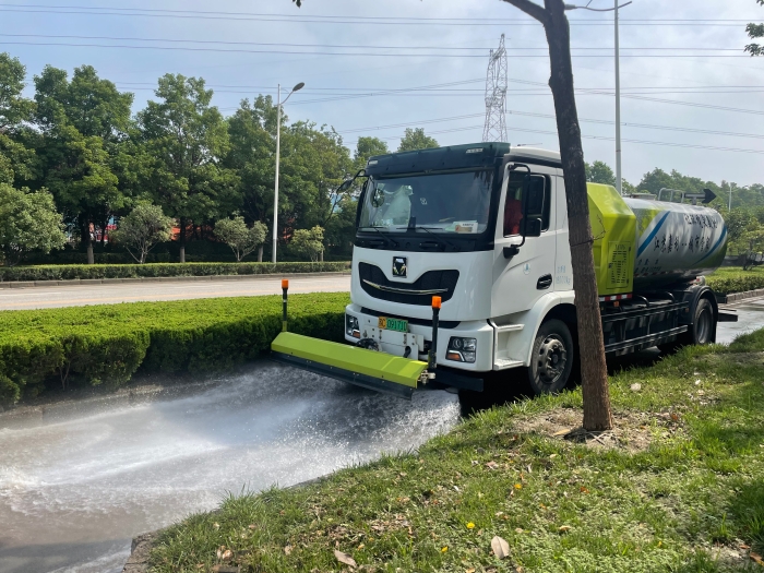 暴雨后的清淤工作讲究“快、准、稳”。结合诚意大道辅道淤泥厚、覆盖范围广的特点,采用“先冲洗、后清扫、再清运”的阶梯式作业模式: