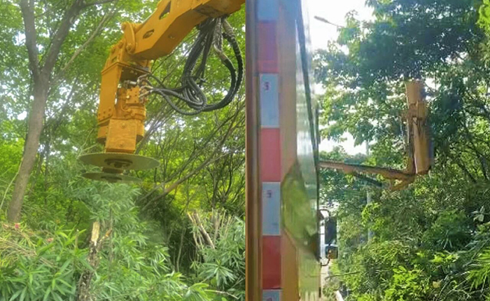 中分带与边枝侧枝的精细化需求:植被类型多样,如大叶黄杨、侧柏等,高度不一,传统人工修剪效率低且难以保证平整度。