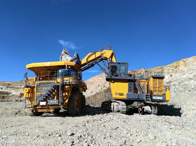在开采环节,徐工XE2000E电动液压挖掘机凭借强悍性能担当先锋。该设备配备12m³标准斗容,通过优化液压系统与专属“矿山模式”,既提升作业效率又降低操作门槛。其矿山作业数据表现卓越:单台月均运行超540小时,可动率稳定在92%-93%,更曾实现整月“零停机”纪录。