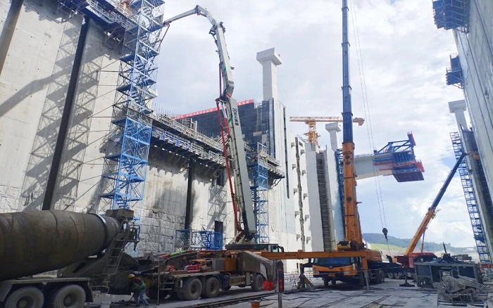 闸门立柱高耸入云,浇筑精度要求堪比“云端绣花”。徐工泵车、起重、塔机成套化装备举重若轻,天堑之间“穿针引线”!