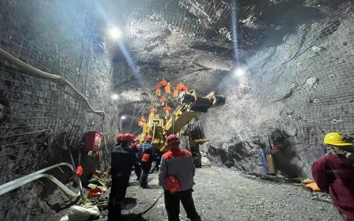 徐工XTR7/360掘进机在矿下展开了一场硬碰硬的较量,平均两小时进尺1m的施工效率,引来现场采矿工作人员的围观。