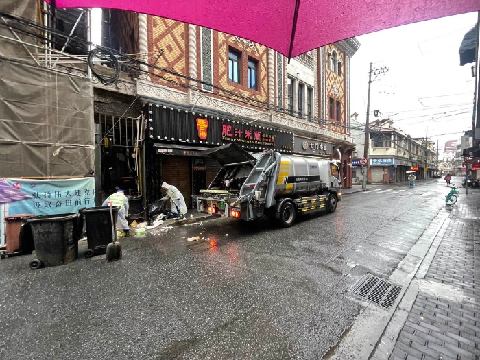 上海黄浦区南京东路,这条承载着百年商脉的中华第一街,每日人流如织、商铺林立。当霓虹初上时,徐工XGH5120ZYSXBEV纯电动压缩车正悄然穿梭于车水马龙间,以零排放、低噪音的绿色身姿,完成着日均近300吨的生活垃圾收转运任务。