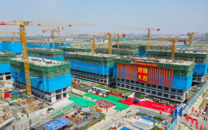 历经200多天奋战,徐工塔机为项目高速建设保驾护航。随着最后一立方米混凝土浇筑完毕,招商·公园1872项目一标段28栋住宅楼在启动区市场化项目中率先全部封顶!