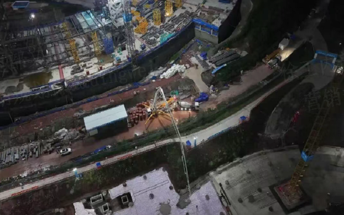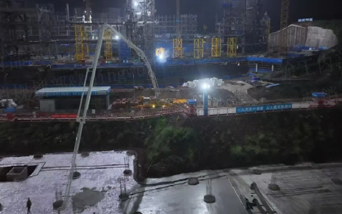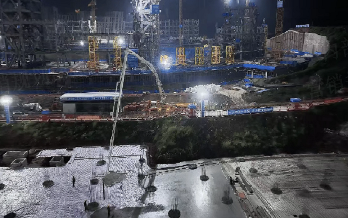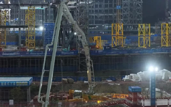 凌晨三点的重庆两江新区,徐工72米泵车展臂高空,20辆新能源搅拌车穿梭往来—这不是科幻电影场景,而是徐工混凝土成套化装备助建重庆赛力斯全球汽车公园的火热夜战场面。