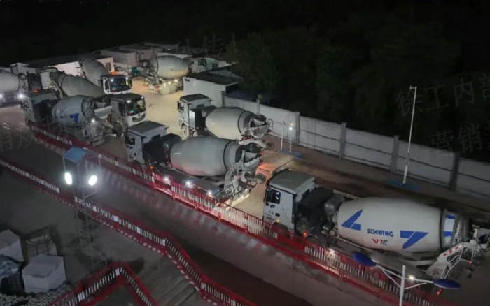 从精准布料到高效输送,徐工72米泵车与新能源搅拌车强强联手,用硬核实力诠释 “钢铁天团” 的夜间作战实力,回应客户坚定选择!