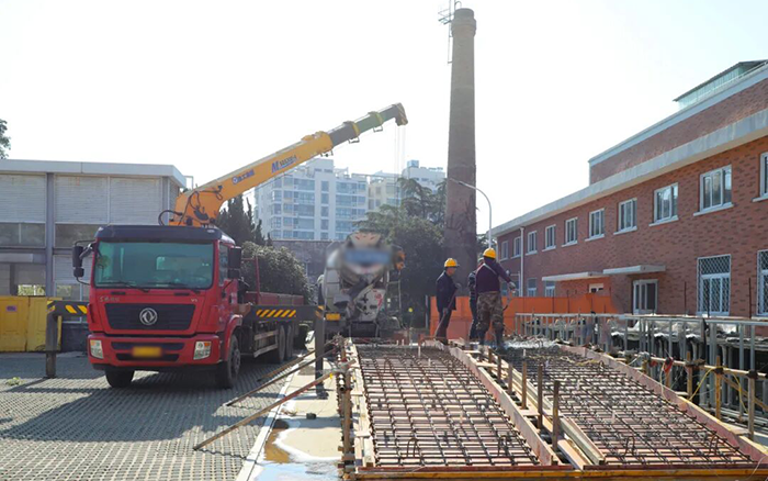 徐工随车起重机凭借优异的起重性能和操作灵活性,完美适配校园施工场景的复杂需求。在混凝土浇灌过程中,它既实现了物料输送的精准度,又以扎实的设备稳定性保障了作业安全,让原本繁琐的浇筑工序效率倍增,为高效基建工程提速增效提供了有力支撑。