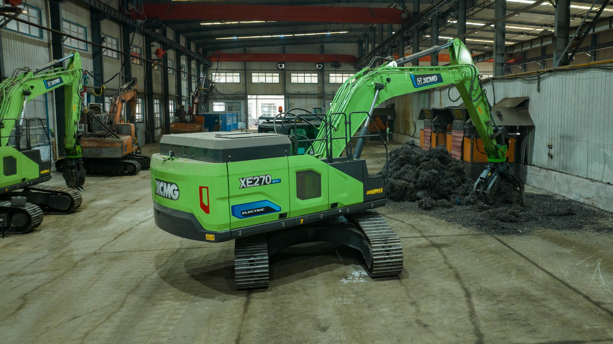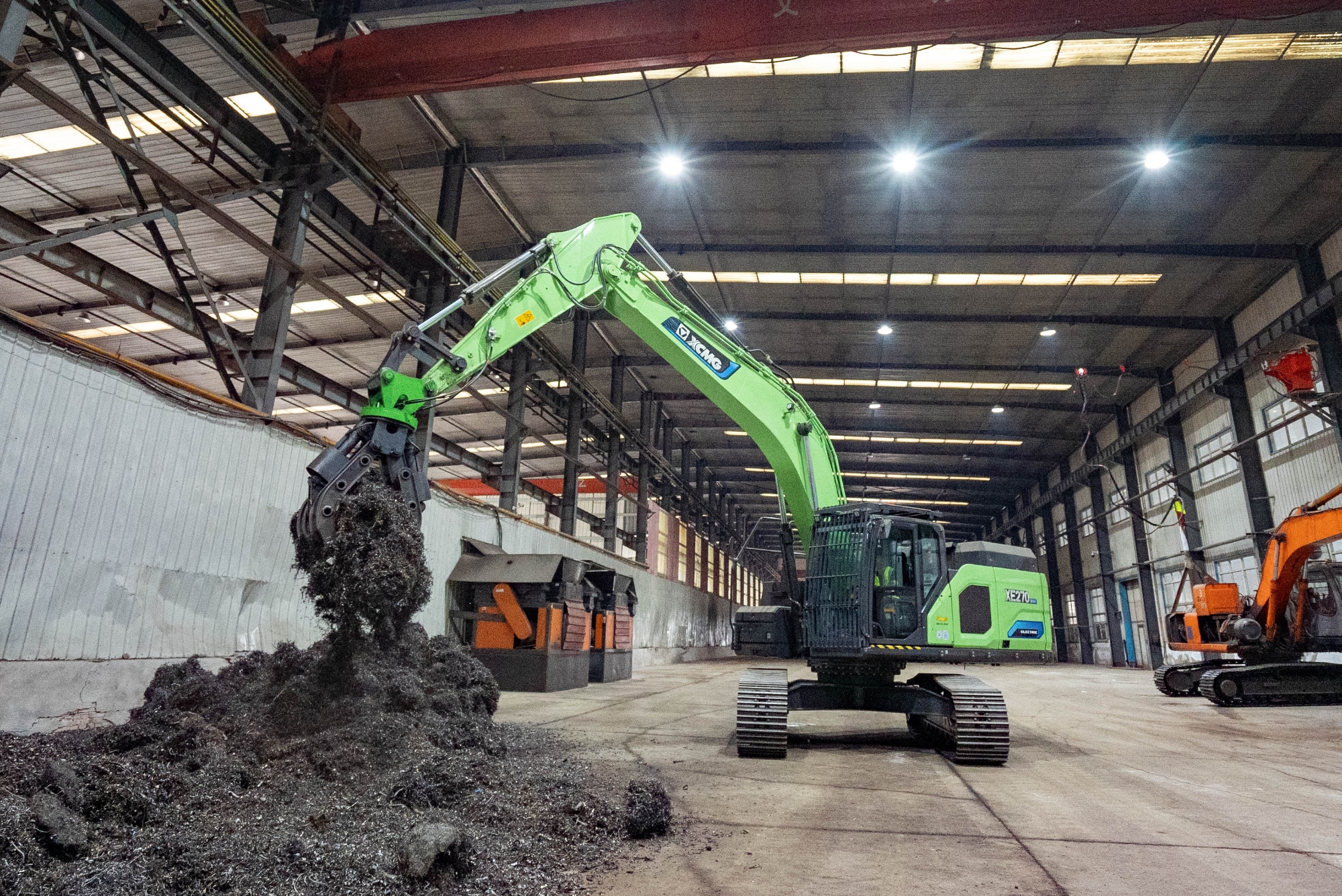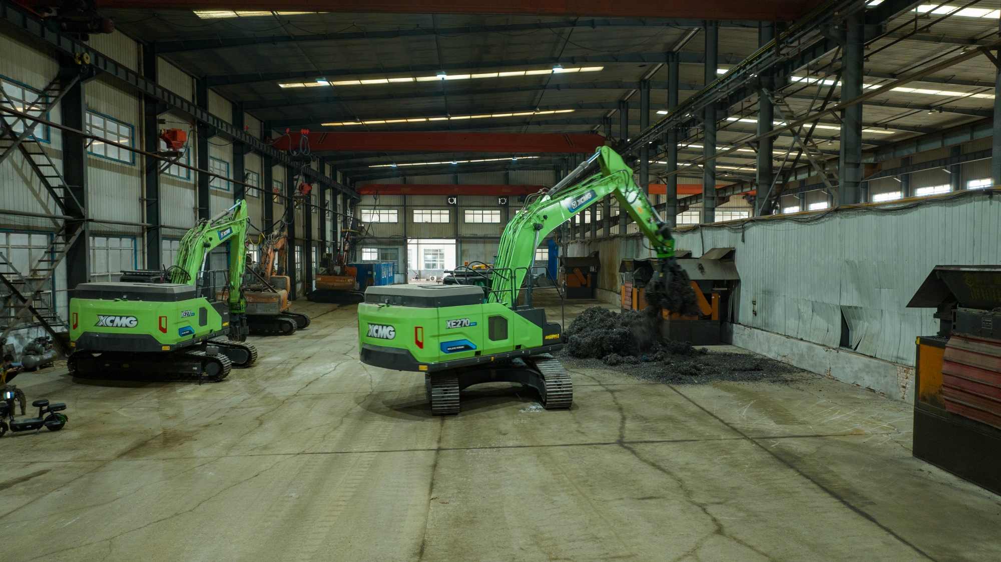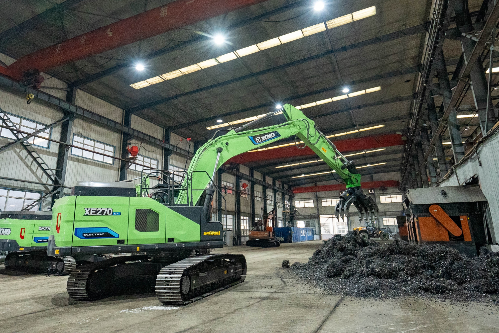在河北唐山某钢厂内,两台徐工XE270EV纯电动挖掘机正灵活地进行铁屑装车作业,与传统燃油设备轰鸣、浓烟滚滚的场景不同,这里只有电机运转的低鸣和高效作业的节奏声。