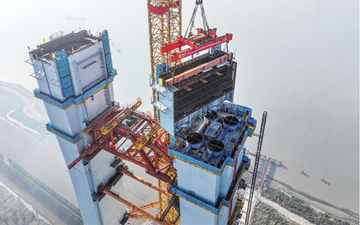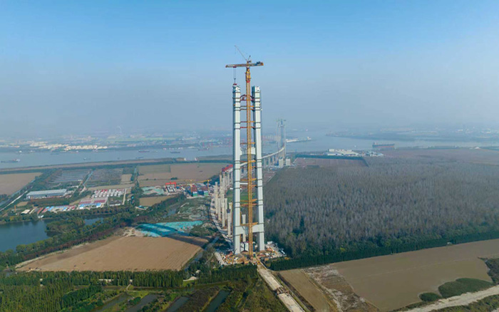 南航道桥北主塔塔柱主体工程全部完工