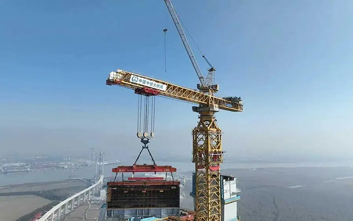 在靖江市马洲岛上空,重达238吨的T29钢塔节段在徐工XGT15000-600S超级塔机的稳定牵引下平稳攀升,精准完成高空对接,整个吊装过程中,塔身始终稳如磐石,为张靖皋长江大桥关键节点的突破提供了坚实支撑。