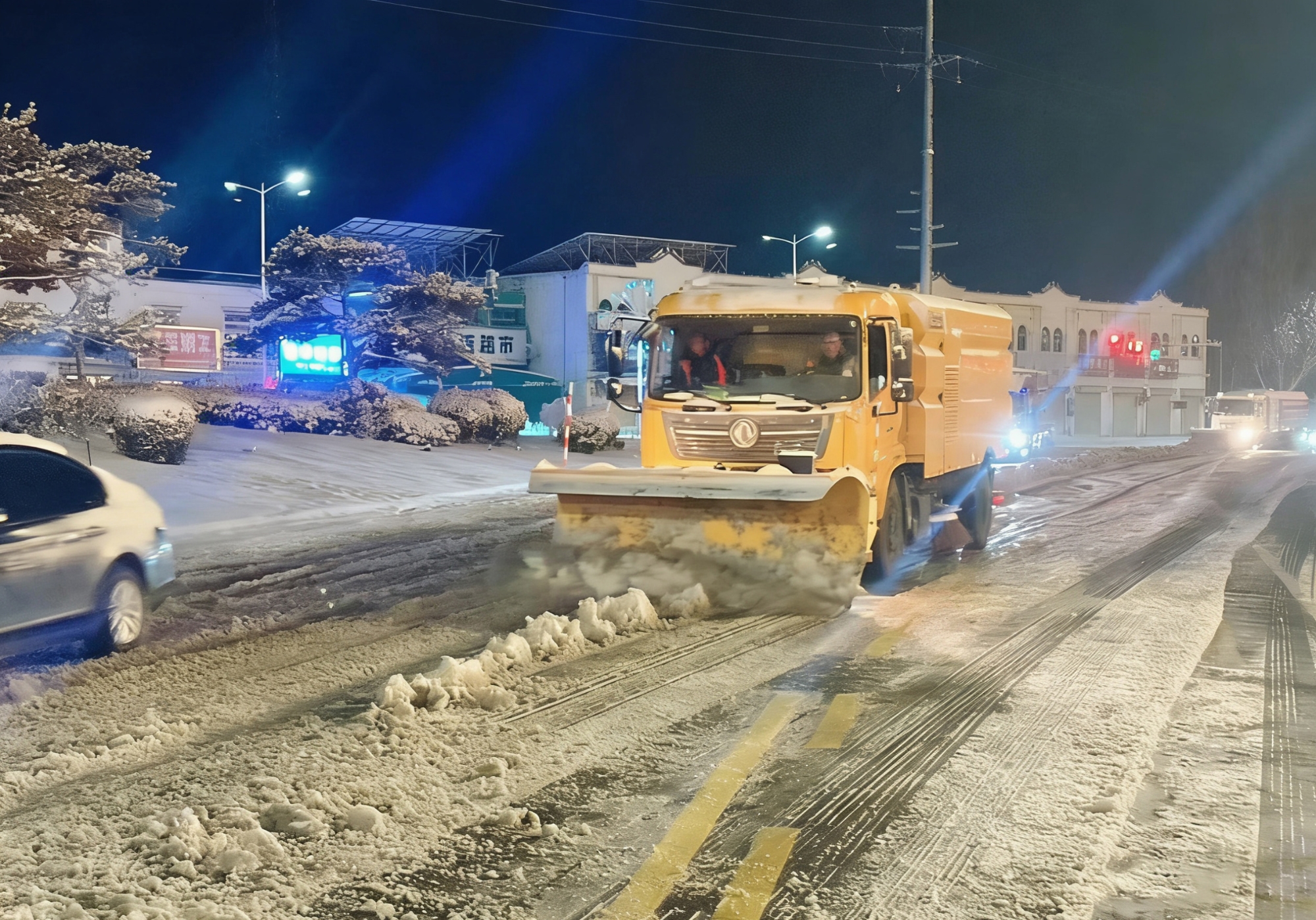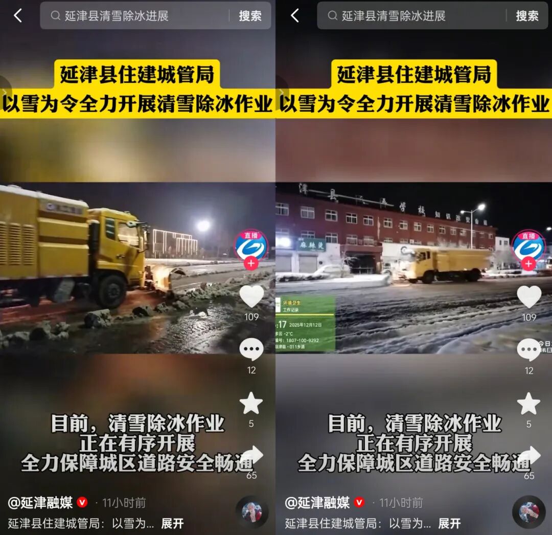 自当日中午起,徐工除雪设备投入连续作战——扫路机前置雪铲,三组司机轮班值守,人歇机不歇,从正午顶风除雪,到深夜低温中破冰前行,直至次日凌晨6点仍坚守岗位。