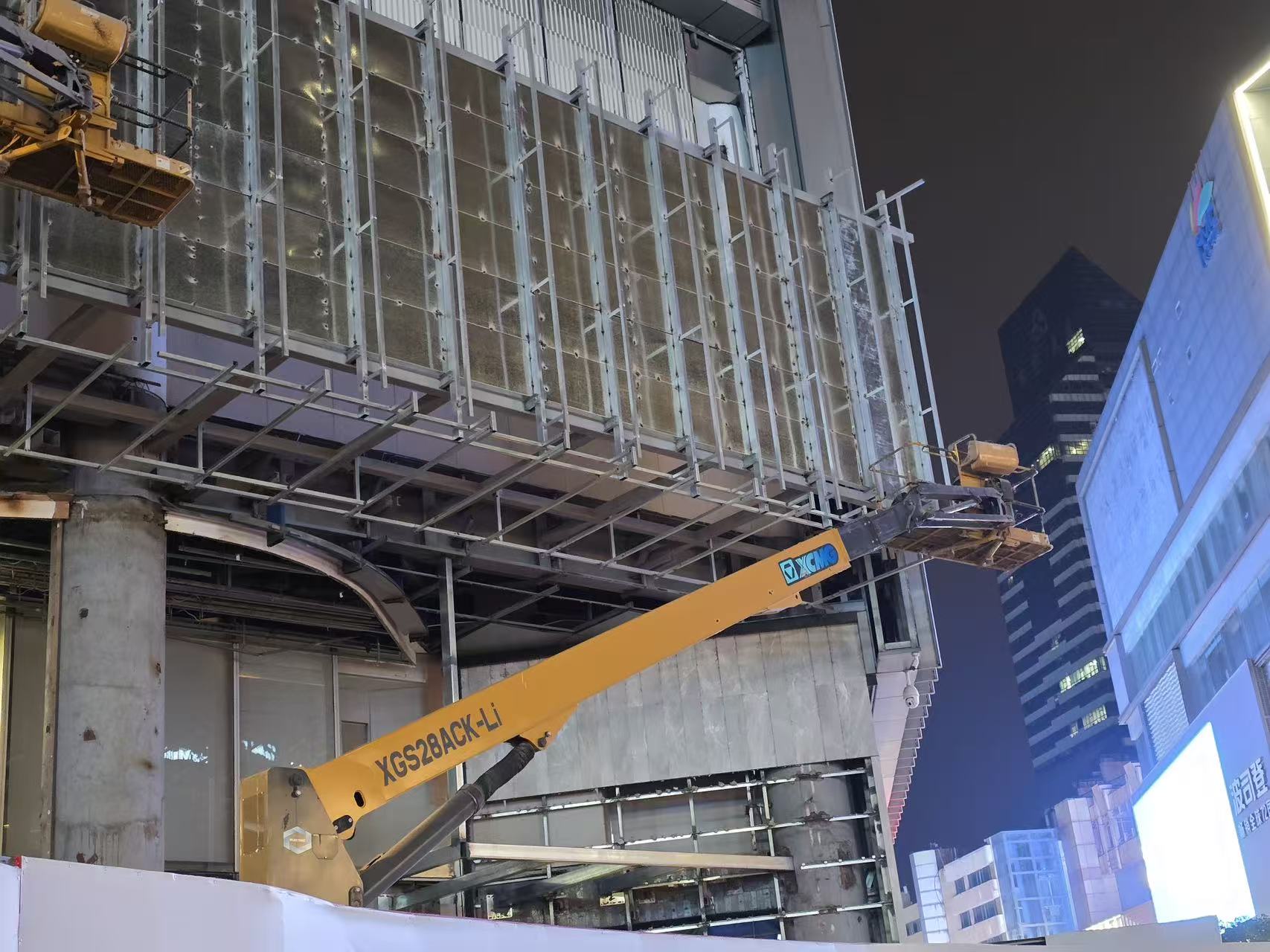 XGS28ACK-Li拥有28.8m最大作业高度,轻松覆盖新百广场高层外立面的幕墙安装、钢结构拼接作业面;460kg的大承载量支持双人协同施工,搭配灵活的臂架操作,大幅提升外立面改造的施工效率。更关键的是,设备采用锂电驱动,实现零尾气排放、低噪音作业,即使在商圈白天运营时段施工,也不会对周边商业活动造成干扰,完美适配核心商圈的施工管控标准。