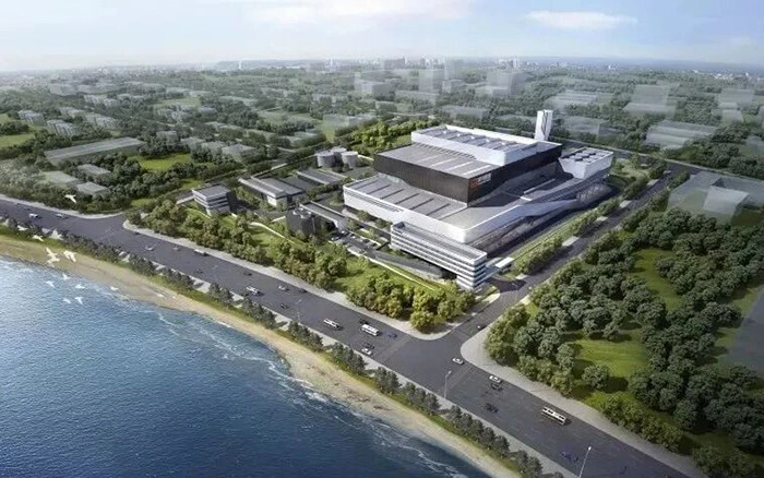 烟波浩渺的海岸边,大连城市中心区生活垃圾焚烧发电厂坐落于此,徐工超大吨位塔机XGT2230-100S正挥舞着擎天巨臂平稳吊装,助建项目高效施工。