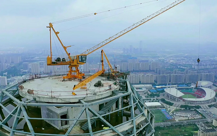 “运行平稳可靠,起升、吊装效率高,用得放心,保证了工期,也保障了施工安全”。“钢铁蜘蛛侠”的完美表现赢得了客户高度认可。目前,天盛中心主楼幕墙一周推进一层,极高的施工效率不断焕新城市界面!