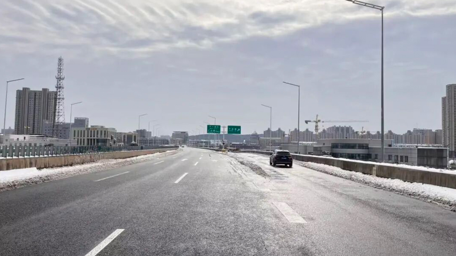 大面积路面积雪结冰