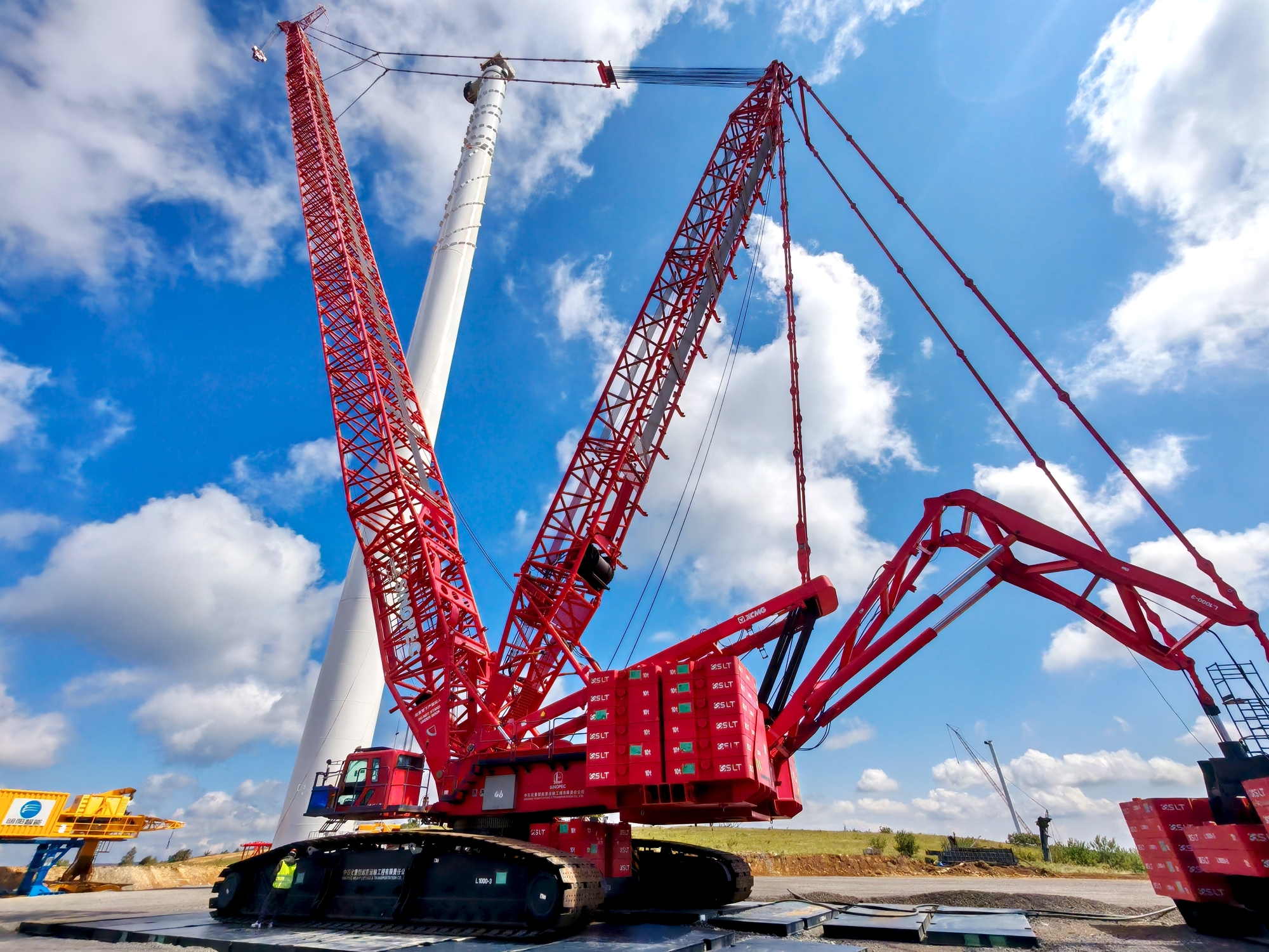 在吊装精度方面,XGC15000A表现尤为突出。项目所采用的风电机组单机规模大,其中叶轮直径达172米,塔筒高度115米,这类超大部件在高空中的对接精度要求极高,任何细微偏差都可能影响机组长期运行的可靠性与效率。