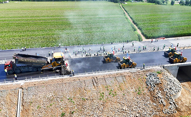徐工智慧施工技术保障路面平整度控制在0.3-0.5的高标准,车辆行驶时无明显颠簸。现场施工负责人说:“以前摊铺宽幅路面,总担心边缘和平整度不一致,现在有 3D 和传感技术盯着,每一米路面都像‘复刻’出来的,通车后司机反馈舒适度特别好。”