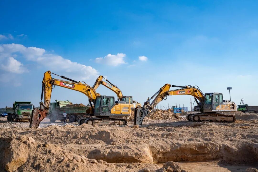 于是,二十多台徐工挖掘机构成了工地高效作业的核心力量。其中,徐工20吨系列挖掘机凭借“挖装破碎均衡”的卓越性能,成为攻坚克难的关键设备,在复杂工况中展现出精准与高效。