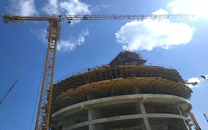 由于施工空间较小,经充分考量后,采用了8台 XGTT200A(7015L-10)徐工塔机产品。该型号塔机,空间干涉小,且配备了无线防碰撞系统,确保各塔机之间协调工作,互不干涉,工作效率大大提高,有效保证了项目的高效进行。