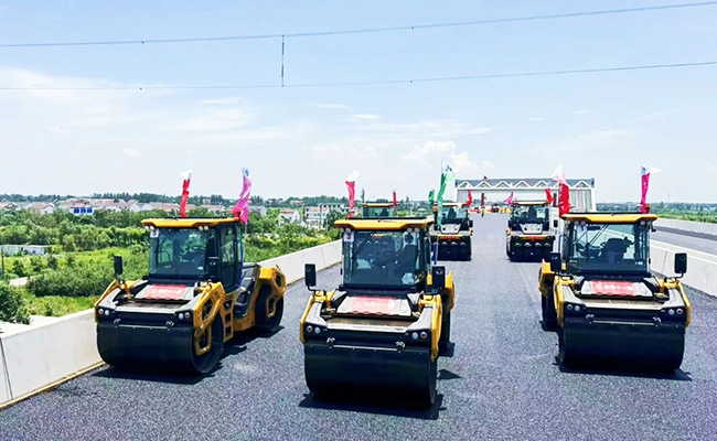 主力设备:徐工XD135T凭借双泵双马达振动液压系统杜绝拍振,67Hz高效压实技术搭配电比例行走控制,大幅提升作业效率;”软起软停“技术,避免路面堆料、拥包,确保路面平整性。