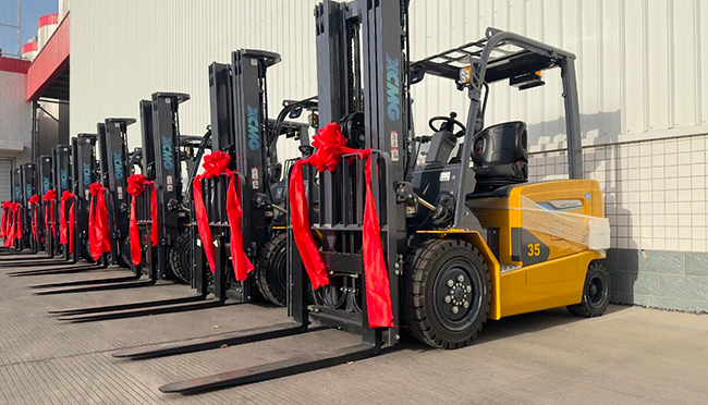 近日,徐工百余台鲲鹏系列电动平衡重叉车发往云南,批量交付当地水果批发市场,用于水果及周边产品的装卸、转运及仓储作业,助力市场实现绿色搬运升级。