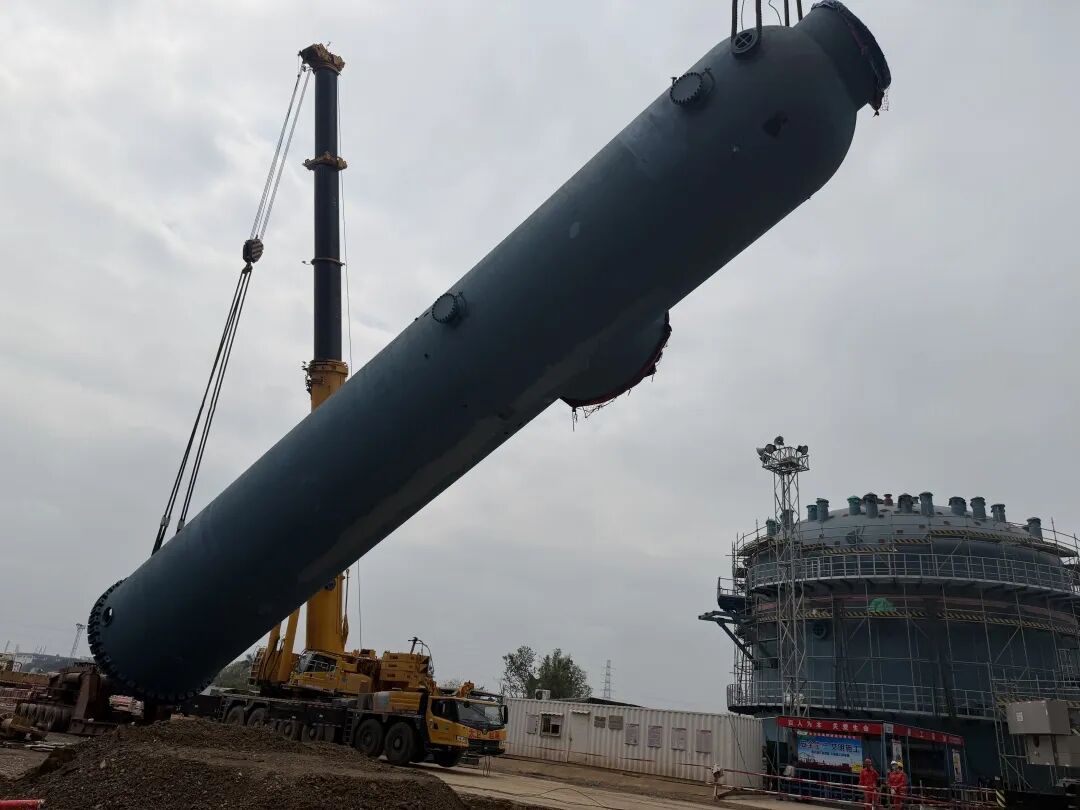 这台“钢铁巨龙”跨越重重障碍,将201吨、直径2.5米、长30米的巨型设备精准送入钢结构框架,实现“零偏差、零风险”就位,再次以硬核实力诠释“国之重器”的担当!