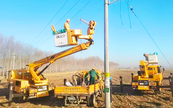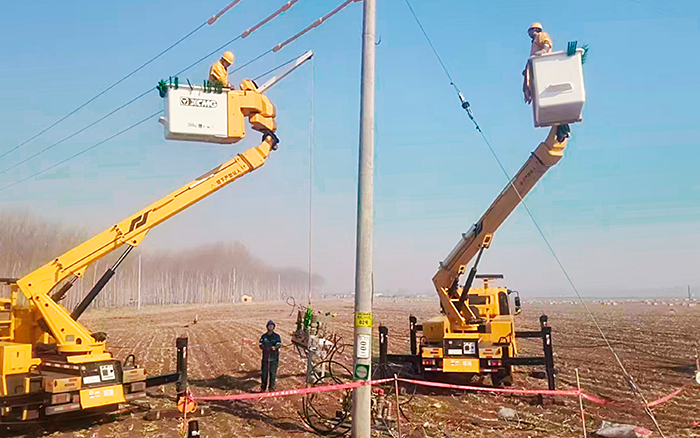 针对东北低温多风气候,设备优化液压与操控系统,低温启动顺畅、动作无卡顿,强风下臂架抗风摆能力突出,保障作业连续性;载荷监测与抗干扰控制系统,实时反馈设备状态,让施工全程可控可溯。此次东北乡间施工,是徐工绝缘斗臂车在复杂地域场景的实力验证,从安全防护到效率提升,全方位彰显了徐工装备在电力运维领域的硬核实力,为农村电网升级提供可靠支撑。