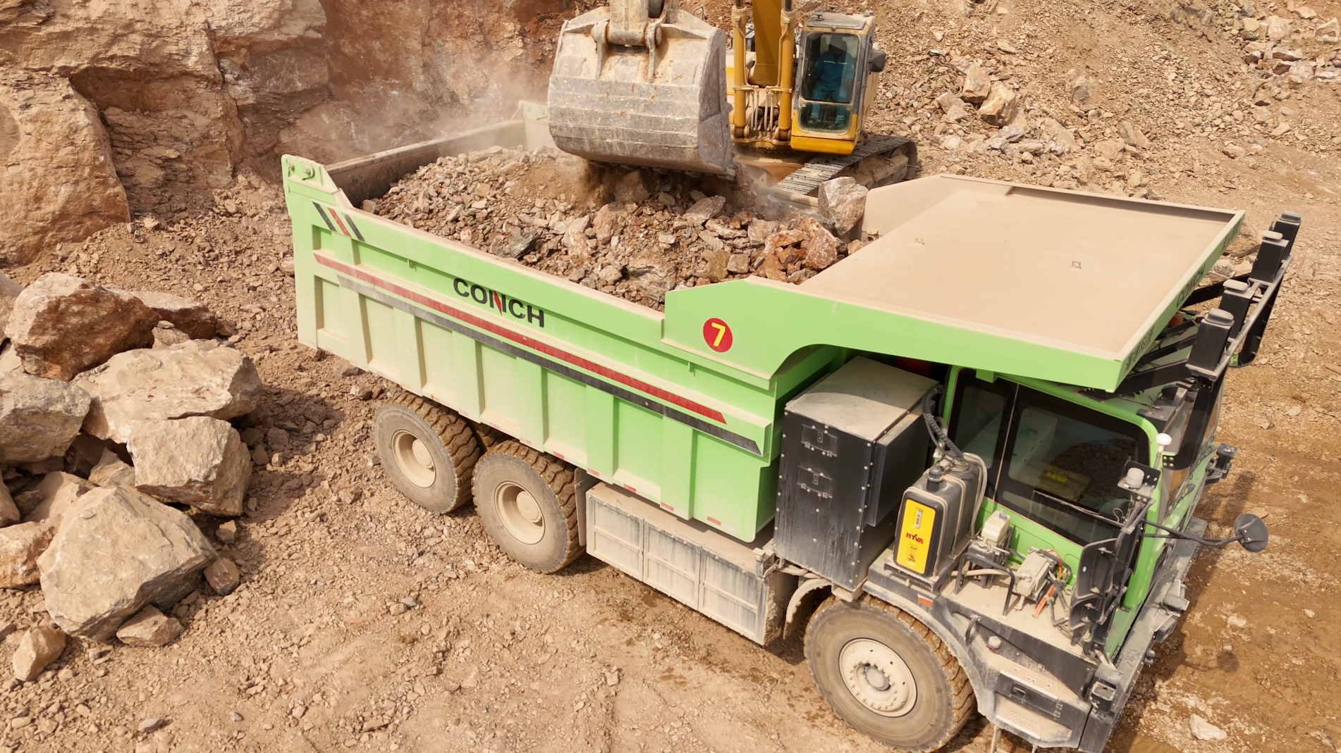 作为水泥行业领军企业,该客户始终以创新驱动发展,以绿色引领转型。徐工矿用挖掘机XE2000、XE950GA等多款矿用设备在矿区稳定运行,其中最早投入的两台XE2000工作时长已分别突破15000小时和11000小时,展现出徐工设备卓越的耐久性与可靠性。