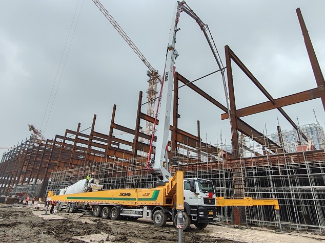 近日,在江苏省苏州市某重点厂房项目现场,徐工HB72V大米数泵车以其卓越的性能,圆满完成了400方楼面混凝土的浇筑任务。