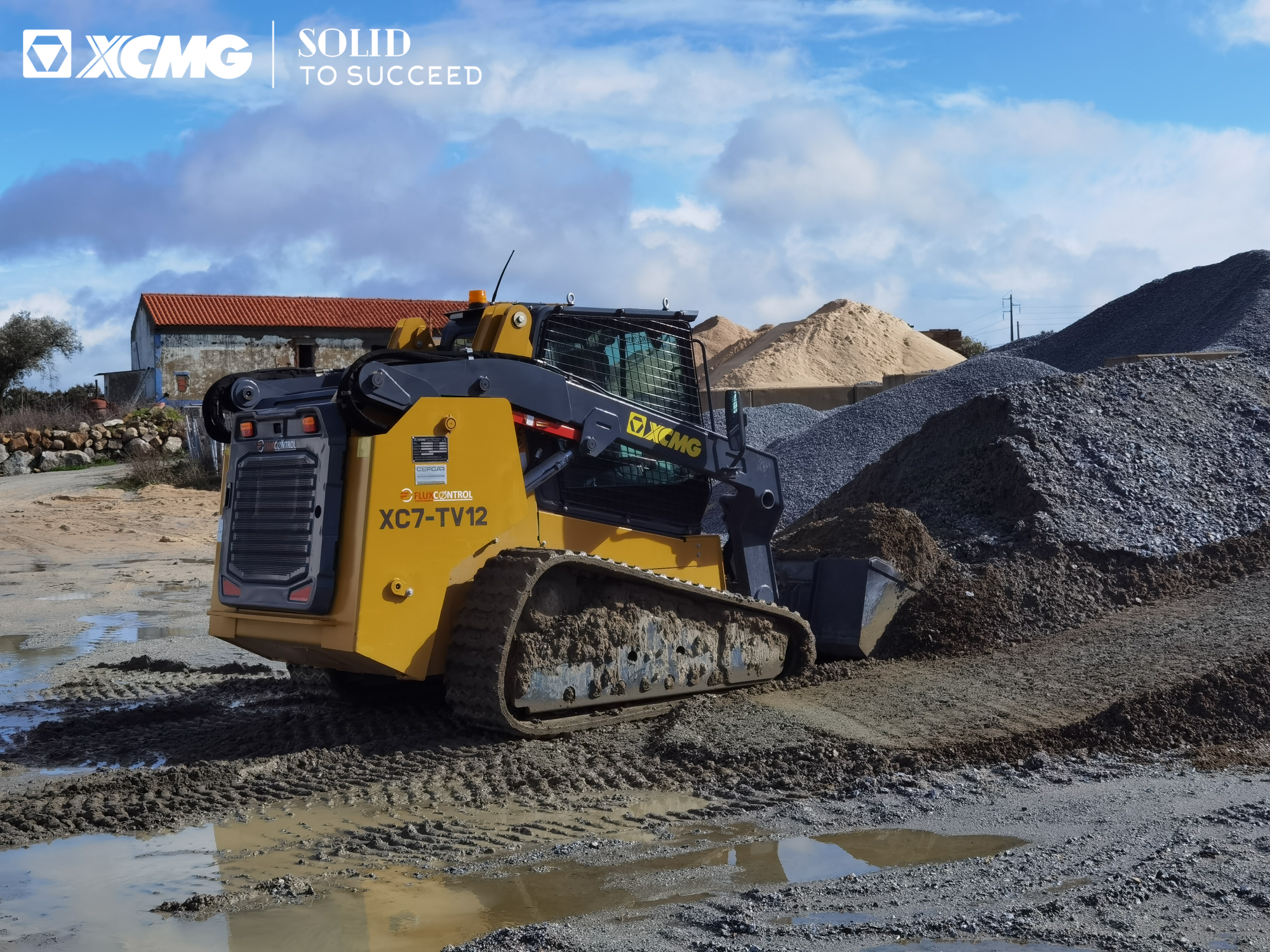 砂石料场物料密度大、转运频繁,对设备动力与效率要求较高。XC7-TV12装备高功率发动机,排放满足EU Stage V标准,在强劲输出的同时兼顾环保与经济性。实际作业中,无论是满斗铲装砂石还是应对略带湿度的物料,XC7-TV12均表现从容。橡胶履带设计接地比压低,既保证了强大的越野与爬坡能力,又不损伤料场地面。