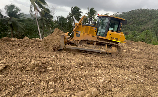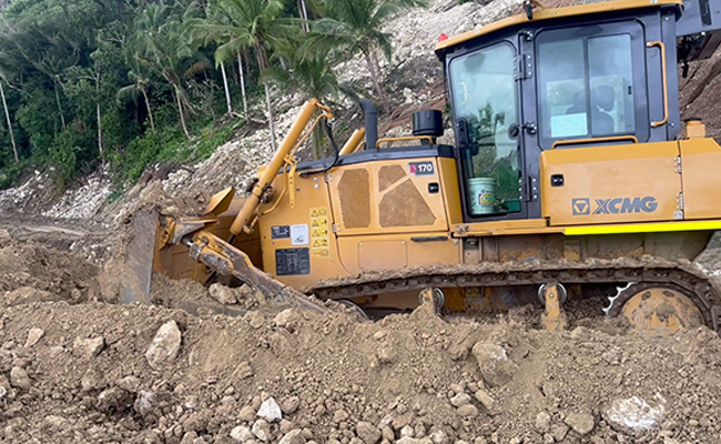 在菲律宾某风电项目现场,徐工D170推土机与XS163单钢轮压路机组成土方先遣队,在复杂地形与多变天气条件下,协力推进施工便道建设与场地平整工作。