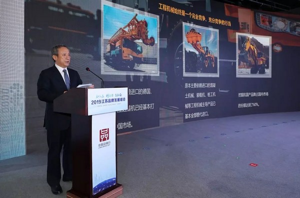 2019年5月8日,主题为“新江苏、铸品牌、创新篇”的2019江苏品牌发展峰会在江苏南京召开,江苏省副省长、省政府党组成员郭元强、国务院发展研究中心前副主任卢中原、 国务院原参事张纲出席峰会。徐工集团董事长、党委书记王民应邀出席并作了题为《担大任、行大道、成大器,心无旁骛一根筋冲顶世界一流品牌》的主旨演讲。
