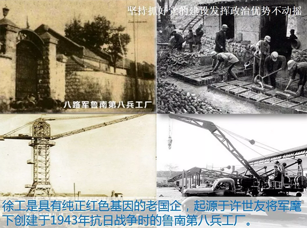 第四是坚持抓好党的建设发挥政治优势不动摇。制造强国战略还有一点至关重要的支撑:就是文化与信仰的力量。徐工是一家具有红色基因的老国企,最早起源于许世友将军麾下创建于1943年抗日战争时期的华兴铁工厂。