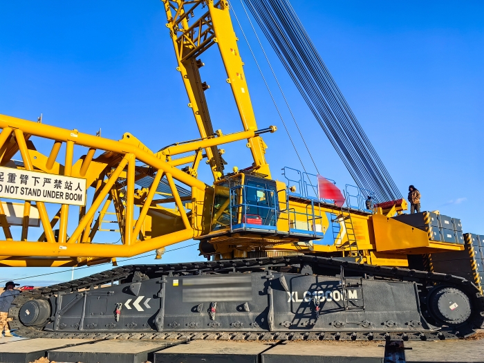 吊起宽幅钢板等大迎风物体,有如让一块“大风扇”在空中“独舞”,风一来,可能撞击臂架或引起猛烈侧摆。给这类重物绑上“定心绳”,防止它在风中随意“飞舞”,确保设备安如磐石。