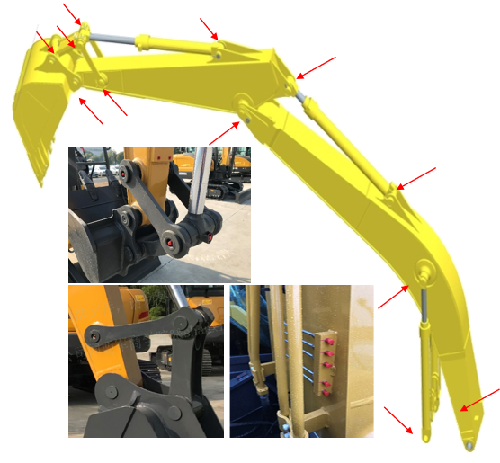 2.工作装置的摆放姿态,随润滑点不同而调整,方便润滑脂加注的操作。