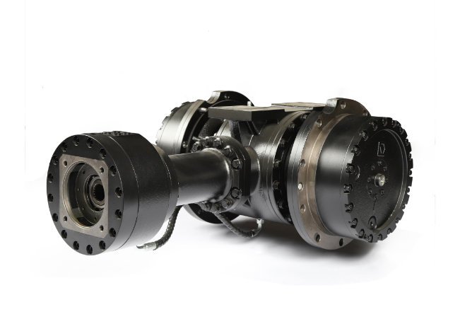 该减速机用于道路公司26~30t大吨位轮胎压路机上,取代传统的变矩器+机械变速箱+驱动桥+链传动的结构,引入全新的马达输入的静液压传动系统。是系列轮胎压路机传动系统的换代升级产品。