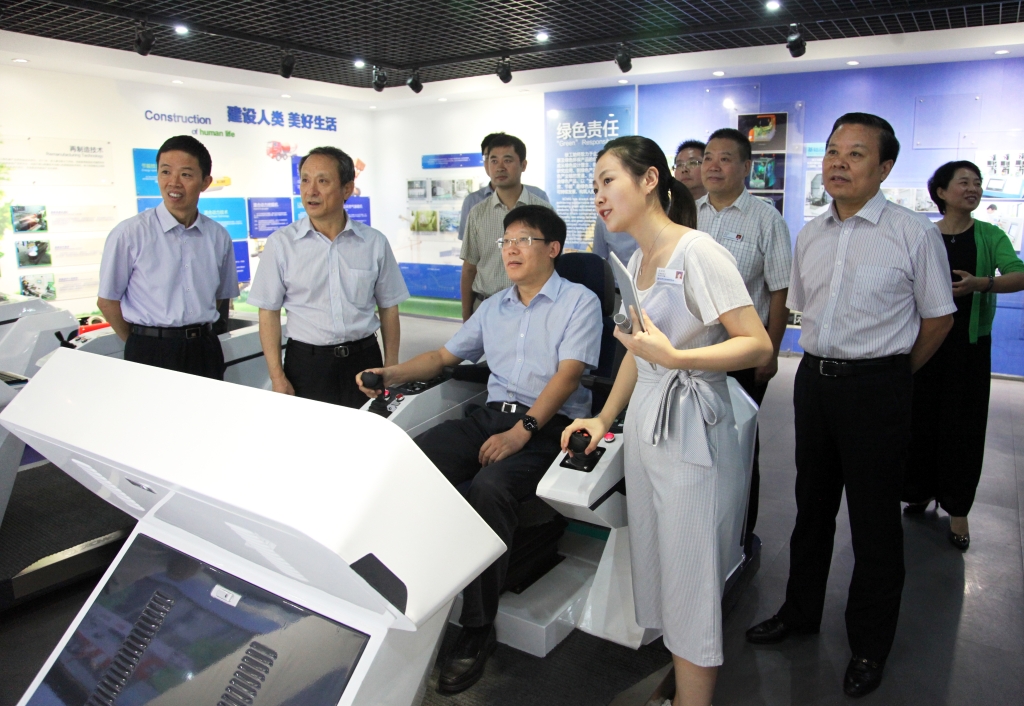 郭行长一行首先兴致勃勃地参观了徐工体验厅,在王民董事长的介绍下全面认识和感受了徐工70余年波澜壮阔的发展历程、始终昂扬向上的精神风貌和在改革转型创新过程中迸发的无穷能量,郭行长高度评价徐工取得的巨大成就以及为国家做出的重要贡献。在参观的过程中,郭行长亲自在工程机械模拟体验机上模拟操作了工程机械施工,并对徐工着力于培养优秀工程机械操作员的优良传统表示赞扬。