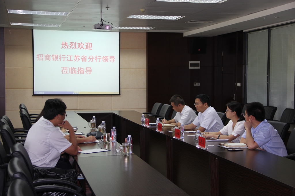 7月26日,招商银行江苏省分行投行部总经理助理吴洁、徐州分行公司部总经理郭宗专等一行四人来访财务公司,财务公司总经理助理罗德永、计划财务部副部长李泓潞等四人参加了座谈。
