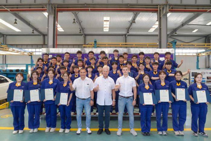 发挥国家级高技能人才培训基地的辐射作用,构建覆盖产业人才全周期的技能人才赋能体系,形成产教评技能生态。打造4类精品项目,涵盖41个工种、27项培训,年培训规模突破1.5万人次。作为全国总工会重点支持工匠学院,面向产业链合作伙伴提供培训及职业技能等级评价与认定服务,组织海外服务工程师培训、高级技师研修、全球技能争霸赛等多类型项目,服务网络覆盖全国31个省及“一带一路”沿线25国,年度赋能总规模超过4万人次。