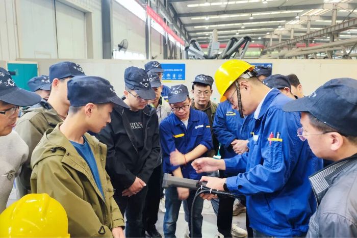 创新“133职业技能培训体系”,深化产教融合,构建“集中培训+岗位研修”双轨机制,每年服务技能人才提升超4万人次。 依托徐工全球优质教育资源,链动政企行校,组建含技能大师、行业专家、高校学者、一体化教学名师在内的多元师资库。 形成“专题讲座→企业考察→实操实训→课题攻关”的成熟培育链,精准对接产业升级需求。