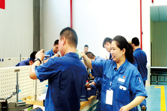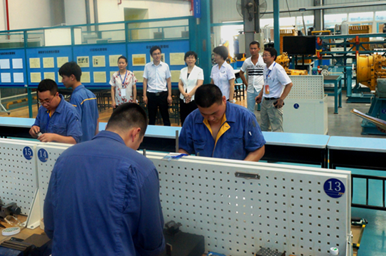 紧扣生产 提升复合技能 本次竞赛项目设置参照世界技能竞赛并紧扣企业生产实际。除了创新设置工程机械结构铆、焊项目外还灵活调整机电液装调控制项目的考核内容及形式。如机械装调模块减少锉配加工中纯体力操作,按企业装配精度要求设置考核标准,注重技能操作的质量与规范;零件测绘模块采用典型零件现场测绘,考察选手测绘及CAD绘图能力;液电控制项目调整手工绘制原理图为运用软件设计并模拟仿真,着重考核选手对工程机械液压系统的设计。此次竞赛注重复合型技能素质考察,是贯彻落实集团公司关于复合型技能人才培养的有力举措。