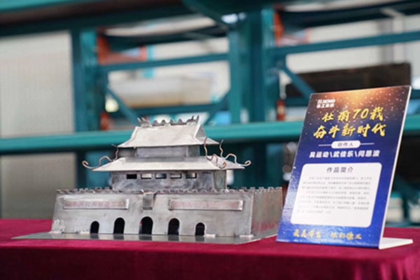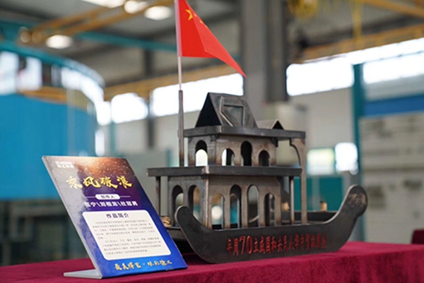 工艺品创作PK环节以“最美焊艺·炫彩徐工”为主题,要求各单位青年焊工围绕“技术领先、用不毁,做成工艺品”的产品理念,结合本职岗位对创新文化的理解,利用现场废料、钢板等边角材料,运用多种焊接工艺和方法,焊接出工艺品,向新中国成立70周年、集团创建30周年献礼。比赛征集到15家单位26个优秀的焊接工艺品。集团团委组织15位专家评委依据技能水平、作品创意、寓意外观等标准维度进行评选。学院青年教师范宁带领刘相龙、杜冠男两位同学,制作作品“乘风破浪”,因寓意巧、技术难度大、完成质量高等受到评委一致好评,勇摘“工匠奖”第一名!