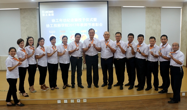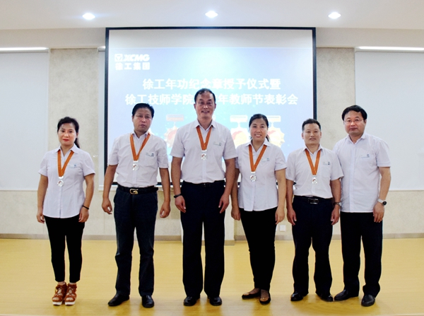 学院广大青年教师一定会以荣获徐工年功纪念章的老教师、老前辈为标杆榜样,将“严格、踏实、上进、创新”的徐工企业精神薪火相传,哺育出更多“技能型、复合型、信息化、多样化”的高素质徐工“工匠”!