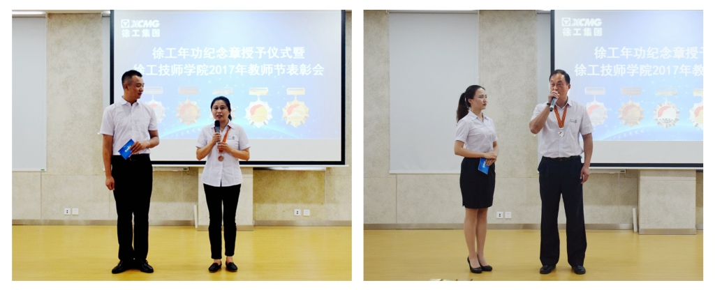 近日,徐工年功纪念章授予仪式暨2017年教师节表彰会在学院图书行政楼五楼多功能厅隆重举行。学院领导班子、徐工年功纪念章获得者、2016-2017学年度先进集体和先进个人,以及全体教职员工参加了会议。