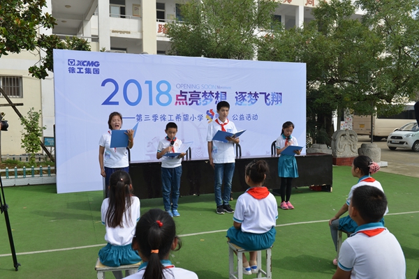 活动中,学院“春蕾”班学生和苑山小学的孩子们共同朗诵《感恩徐工》诗歌,表达对徐工大爱关怀的深深谢意。