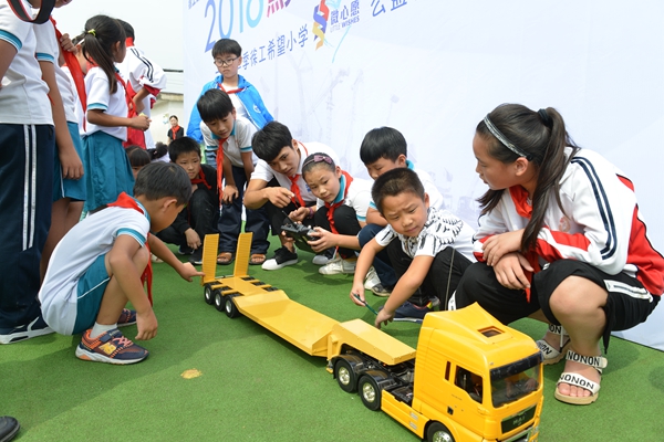 美食、礼物、有趣的工程机械产品模型操作体验和产品拼图比赛……让徐州市铜山区徐庄镇苑山小学的校园一派欢腾,同学们恣意地享受着这份来自徐工的暖心关爱。