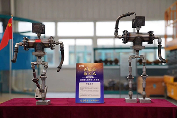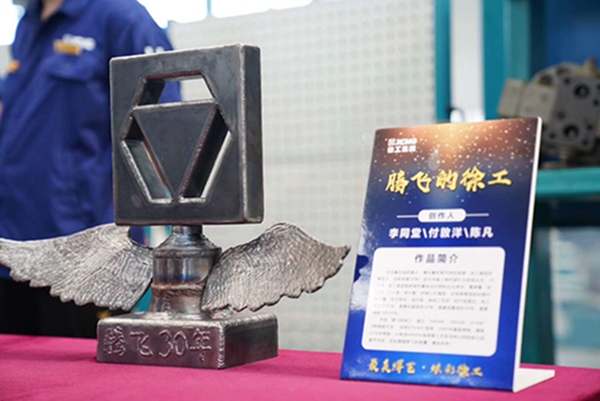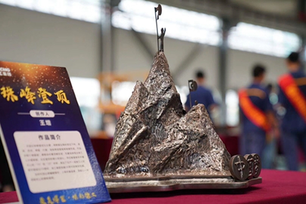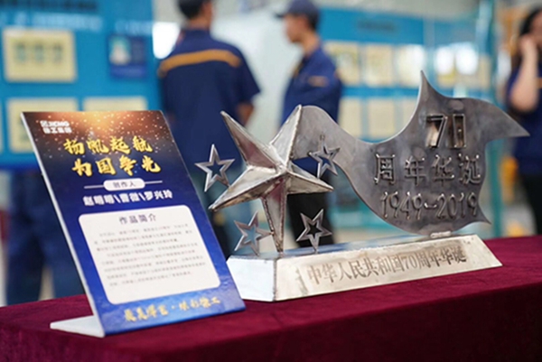 工艺品创作PK环节以“最美焊艺·炫彩徐工”为主题,要求各单位青年焊工围绕“技术领先、用不毁,做成工艺品”的产品理念,结合本职岗位对创新文化的理解,利用现场废料、钢板等边角材料,运用多种焊接工艺和方法,焊接出工艺品,向新中国成立70周年、集团创建30周年献礼。比赛征集到15家单位26个优秀的焊接工艺品。集团团委组织15位专家评委依据技能水平、作品创意、寓意外观等标准维度进行评选。学院青年教师范宁带领刘相龙、杜冠男两位同学,制作作品“乘风破浪”,因寓意巧、技术难度大、完成质量高等受到评委一致好评,勇摘“工匠奖”第一名!