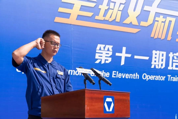 培训师代表和机手代表郑重承诺,秉承徐工工匠精神,潜心研习,超越自我,将“徐工,让世界更美好”的公益理念传递到全球的每一个角落。